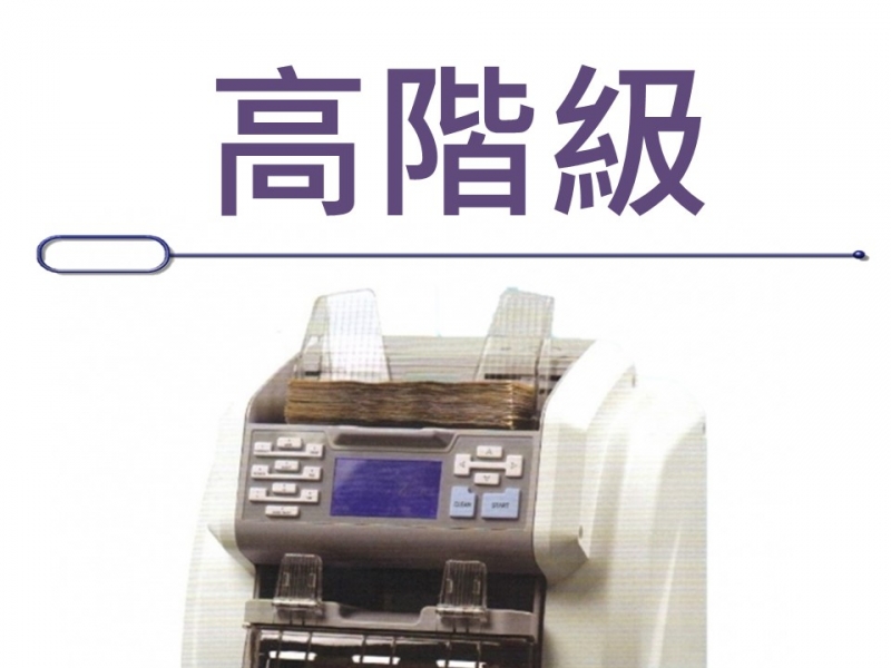 - 高階機是兩層設計,有退鈔層,是銀行和找換店用常用適合大量數鈔;數鈔時發現鈔票有問題會退到上層;所以可不停數鈔;最後把退鈔層有問題的鈔票再數;不需全部再數一次,節省時間已