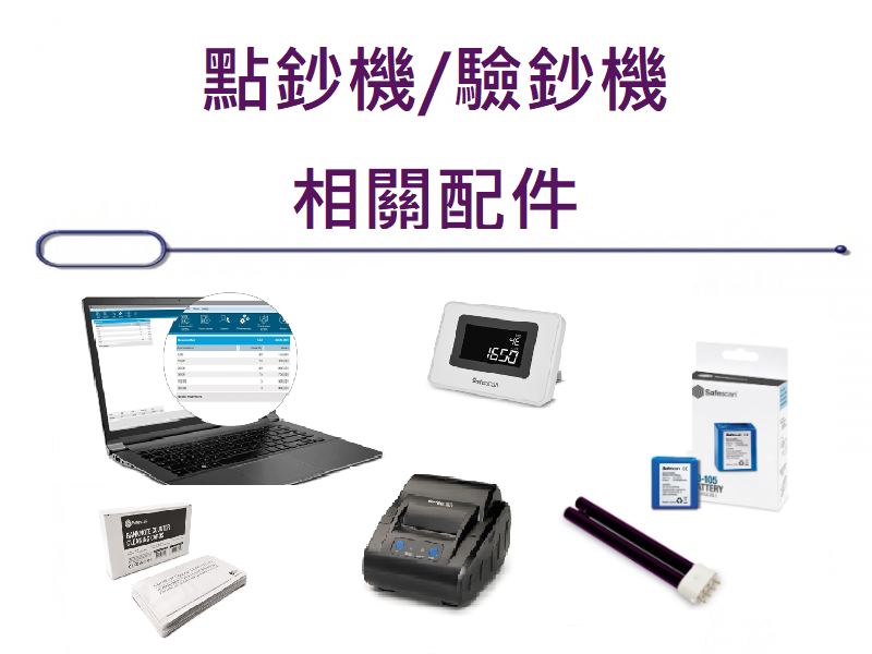 1. 低階機 Safescan 2850 單層設計 (合簡單驗鈔,有3 種鑑偽功能︰紫外線(UV)、磁性油墨(MG)及 SIZE (SD) (尺寸檢測,注意: 無分貨幣和計算總額和不能分辦不同國家的貨幣)