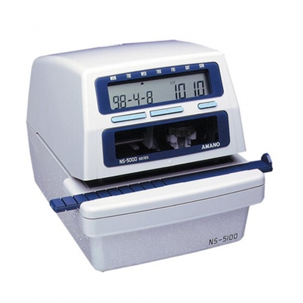Amano NS-5100 is a heavy duty electronic stamp that will print any combination of time, date and number. This machine is fully programmable for custom print size, characters, and numbers. Features include adjustable print position