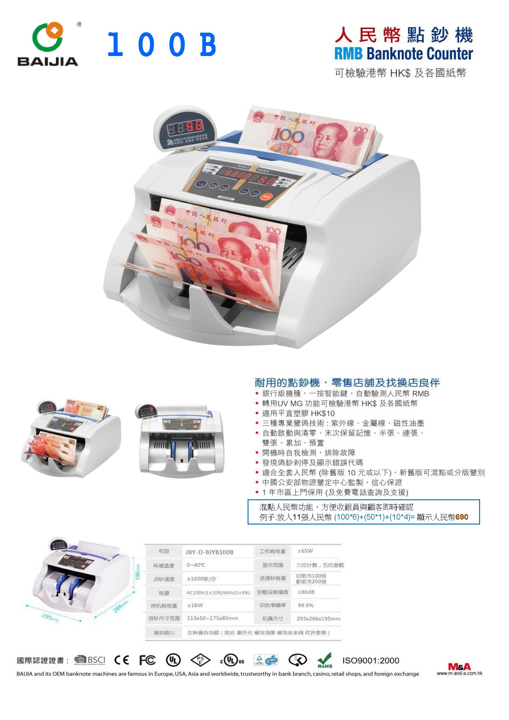 這是入門級的驗鈔數鈔機,其功能是最基本的,港幣及人民幣只驗三種專業鑒偽技術: 紫外線 (UV),金屬線 (MT)、磁性油墨(MG),普通質素較差的假鈔是可以辨認到,如用普通彩色打印機打印的低質素假鈔,是可以分辨到的,但如果是普通質素的假鈔,已經製了水印(紫外線 UV) 的假鈔,金屬線 (MT)、用磁性油墨印製(MG)就能騙過這些機種,