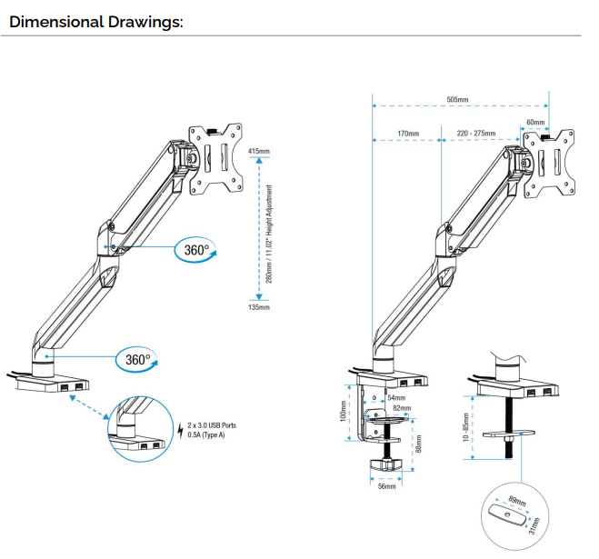 Fully independent adjustable arm: increase workspace flexibility with 19.75 inches reach and free up desk space