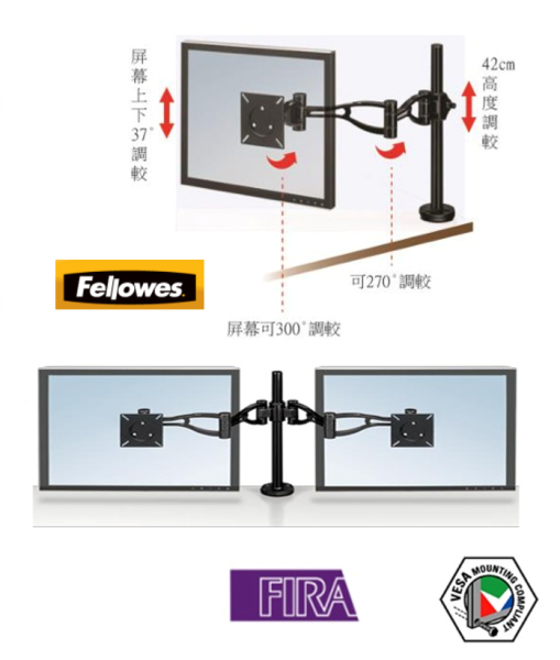 調較螢幕傾斜度為上下+/- 37度