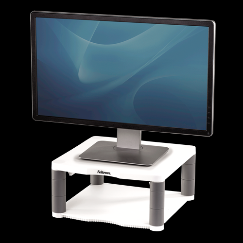 Fellowes Premium Monitor Riser is an adjustable monitor riser with five height positions in order to promote comfortable working conditions and prevent neck strain associated with extended computer use.