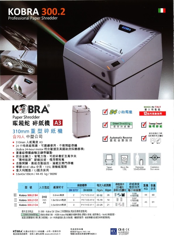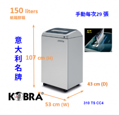 Kobra 300.2 C4 (cross cut 3.9X40 mm) departmental Shredder shred capacity 23 sheets, 150 Litres 意大利製造