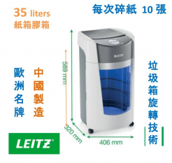 - Waste Bin(廢紙箱容量): 35 liters, Feed width (入紙口寬度): 240 mm