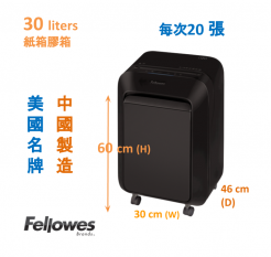 - Shred bin capacity 紙箱容量:30 liters , 拉櫃桶式