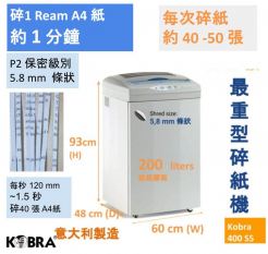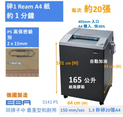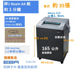 - Machine Class 機器級別: EBA 5141 P4 最重型碎紙機