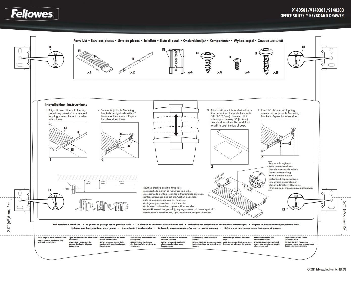 Stow keyboards and mouse pads away neatly under desks when not in use by adding this keyboard drawer. Create a comfortable typing environment by adjusting the height of a keyboard by using one of the three different positions on this Fellowes Office Suites drawer.