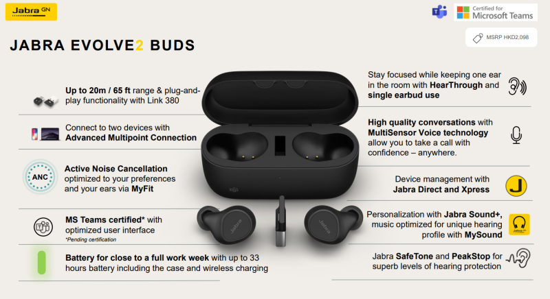 It says the Evolve2 Buds are ‘certified’ what does that mean? Unlike most other true wireless earbuds, Evolve2 Buds are certified by our tech giant friends like Microsoft, Zoom and Google. Certified devices have been specifically designed and built to plug-and-play and work seamlessly with your virtual meeting apps. This means enhanced compatibility and a better experience compared to non-certified devices. And getting certified isn’t easy (if it was, everyone would be doing it). Only professional devices that meet extremely high standards of rich, optimized audio quality and user experience achieve this badge of honor.