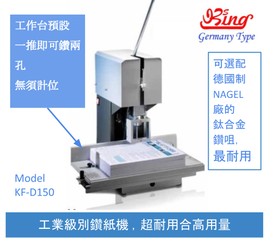 - 預設不同孔距,如常用的兩孔filing , 一推工作台即可鑽第二個孔,無須對位