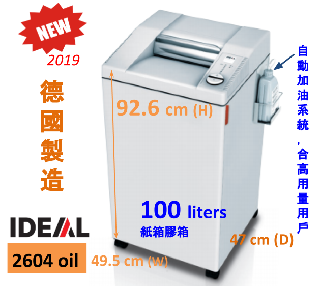 - Shred Capacity: 每次碎紙量 :16 張 (70g) 14 張 (80g) -Waste Bin Capacity 廢紙箱容量 :100 liters公升 -切紙寬度: 2x15 亳米 細粒狀 -Paper Entry 入紙口寬度(亳米):260亳米 -Security Level 保密級數: DIN 66399(New): P-5 , (舊標準 DIN 32757:4) - Motor Power: 680 Watt -體積 (濶 x 深 x 高): 495x 470 x 926 mm 一年上門保用服務 ,德國製造
