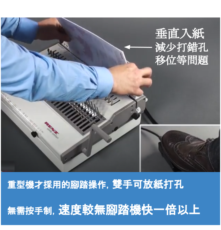 The depth gauge feature allows the operator to adjust the punched hole margin from 2 mm to 4,5 mm. This adds strength to the bound edge.