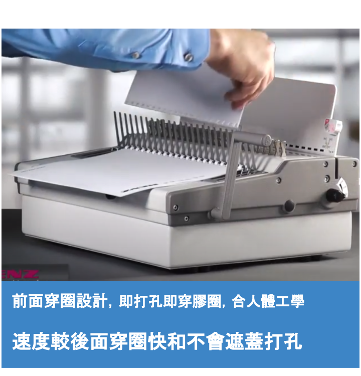 It binds volumes up to 480 sheets. The closure control guarantees quick and easy comb opening and closure.