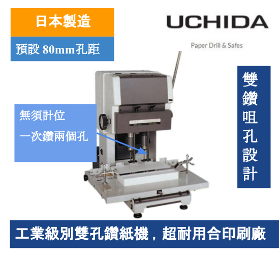 Twin spindle drill with a pre-programmable pitch bar, 50mm pile height for drilling paper sizes up to A3, bench mounted with centring guides for accuracy.